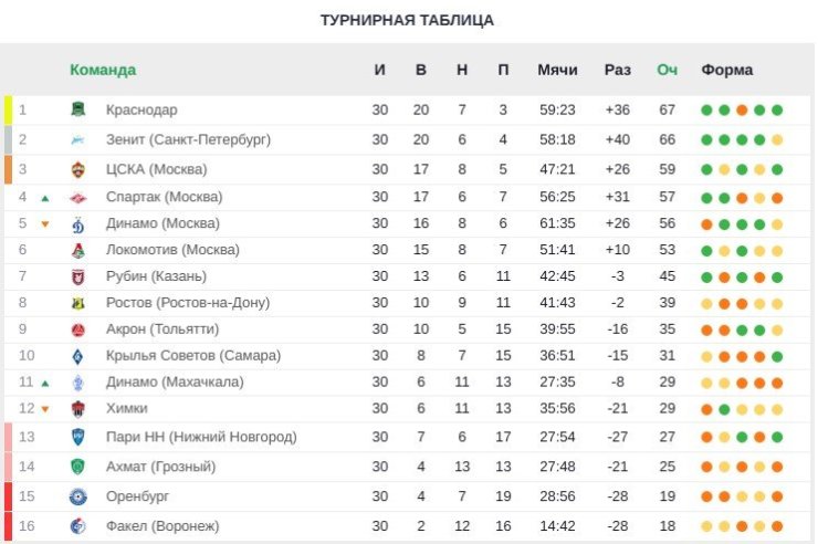 Текущее положение в турнирной таблице: