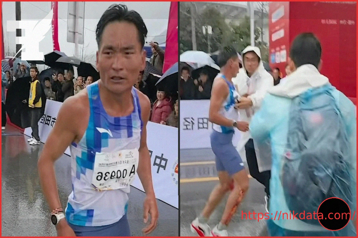 Viral images from China show an unusual incident where a race referee was filmed preventing the winner of a marathon from crossing the finish line. This controversial act has led to the immediate suspension of the official.