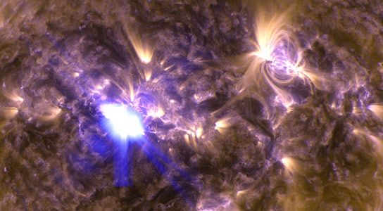 A powerful solar flare captured erupting from the Sun`s surface.
