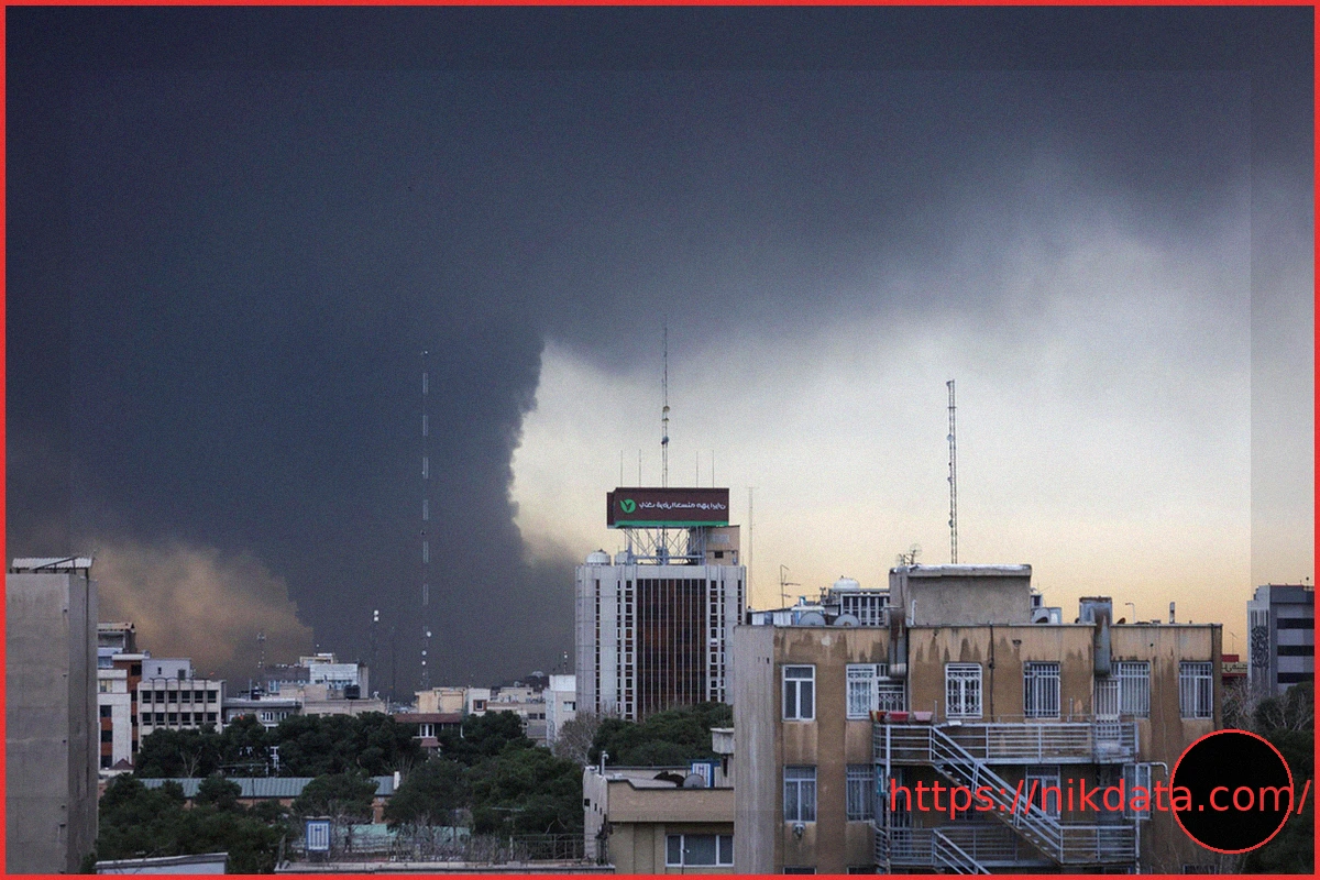 Columns of smoke rose in Tehran on March 8, 2026, following an explosion, amidst the escalating tensions of the conflict involving the United States, Israel, and Iran.