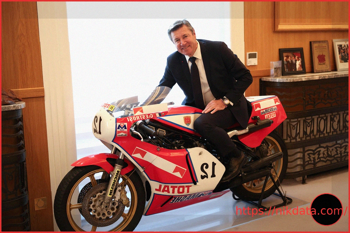 On February 26th, Christian Estrosi was captured in a photograph, posing alongside his French championship motorcycle. This distinctive vehicle was notably displayed within his office as the Mayor of Nice.