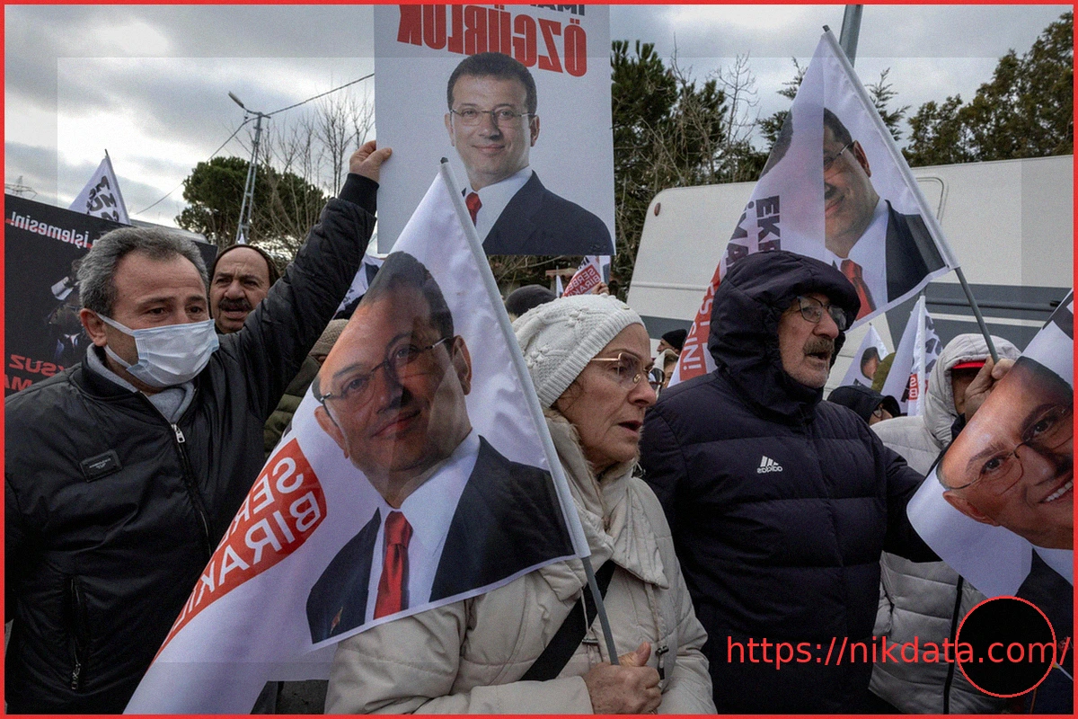 Thousands of supporters of Ekrem Imamoglu, Istanbul’s mayor and a prominent rival of President Recep Tayyip Erdogan, gathered outside the Marmara-Silivri penitentiary and judicial complex. This demonstration took place during his initial hearing regarding the charges brought against him, marking one year since his arrest.